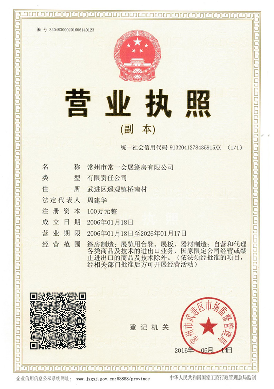 常州市常一會展篷房有限公司(簡稱常一篷房),創(chuàng)立于2006年,坐落于中國制造名鎮(zhèn)江蘇省常州市武進(jìn)區(qū)遙觀鎮(zhèn),公司占地面積近萬平方米,距離常州機(jī)場,高鐵常州站,常州長途汽車站僅半個小時路程,交通十分快捷。我公司地處滬寧高速(G42)橫山橋出口處,滬武高速(S38)戚墅堰、遙觀、橫林出口處,G312國道遙觀段,S232省道遙觀段,常州東環(huán)線遙觀段設(shè)置了標(biāo)準(zhǔn)化廣告指路牌,物流交通非常便利,以方便國內(nèi)外客戶......